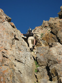 Last weekend, Keith hiked two of the Colorado Fourteeners with his buddies. For those of you not from Colorado, a Fourteener is what we call a mountain that is over fourteen thousand feet above sea level. Keith and his friends climbed Torrey's (14,267 ft) and Gray's (14,270 ft). They were preparing for a four day hike trip with four fourteeners this weekend. Unfortunately, Keith had to cancel for work commitments but he was still up to the challenge of climbing Torrey's and Gray's via the knife edge. You'll see what I mean when you look at the pictures. These are trips that I like to not think about until he gets home and I see the pictures. YIKES!