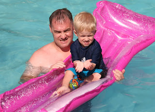After nap time, we hit the pool, clouds and all. The sun came out a few times to warm us up, but the boys didn't really seem to notice either way.