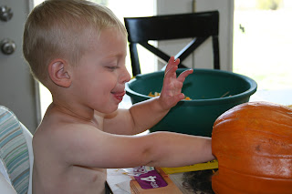 Spiderman was more than happy to pose with the pumpkin he and his Daddy carved.
